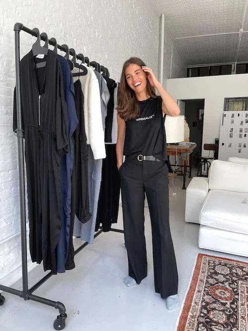 A: I love investing in sustainable basics and making my style unique by renting fun pieces for events and shopping secondhand. My style revolves around sustainable/ethical white and black tees, good denim, fun vintage jackets, and accessories. Timelessness is key, and I try and stay away from trends that will go out of style. If I like something trendy, Iβll wait a few months to a year to see if I still love it and then try to find a secondhand option instead of purchasing something new.